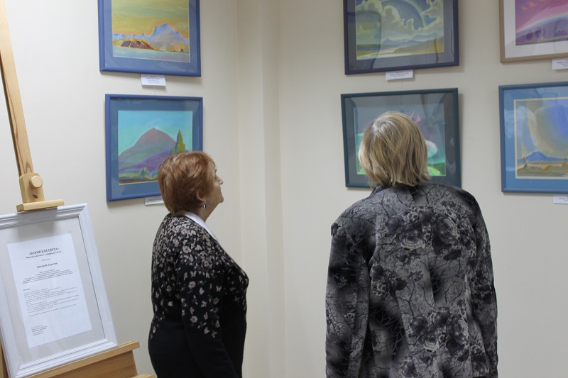 Кроме того, Дмитрий провел экскурсию по выставке для читателей и гостей библиотеки. Он подробно рассказал об истории создания отдельных этюдов и картин. А также о природе света, которая является основной темой выставки. По мнению художника, присутствие света в материальном мире можно изобразить разными способами. В своих работах он опирается на достижения мировой культуры, в частности на творчество Николая и Святослава Рерихов.